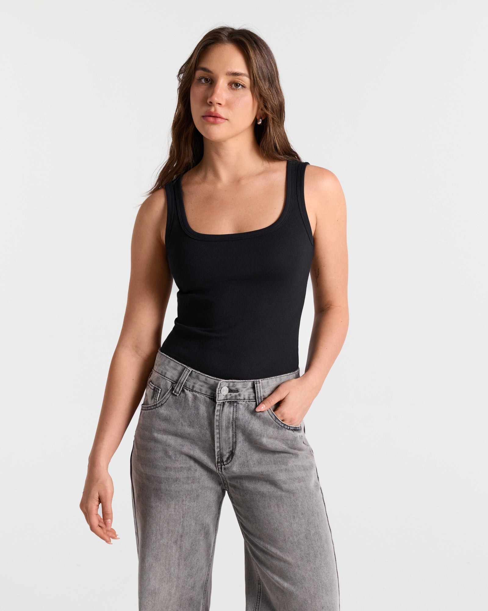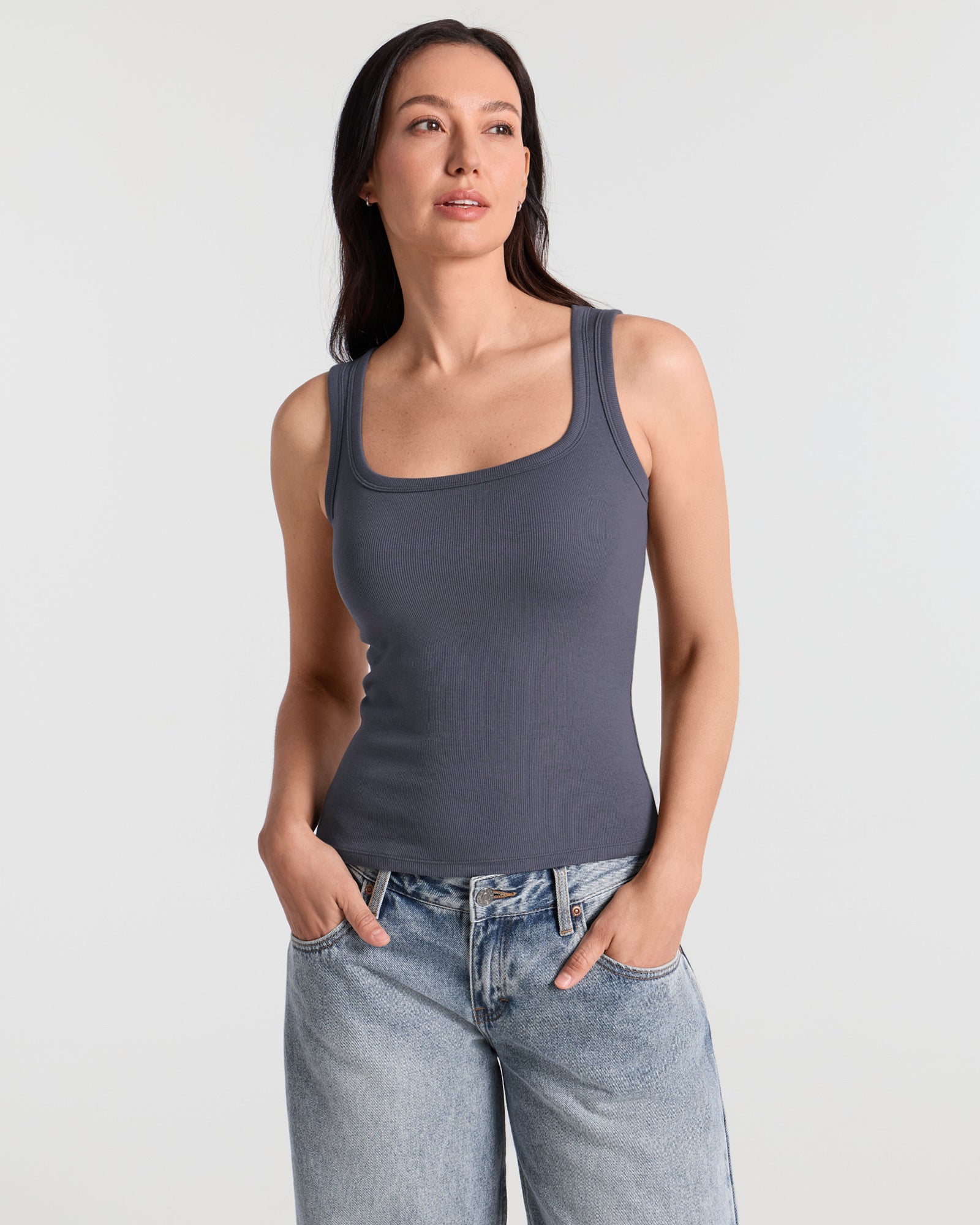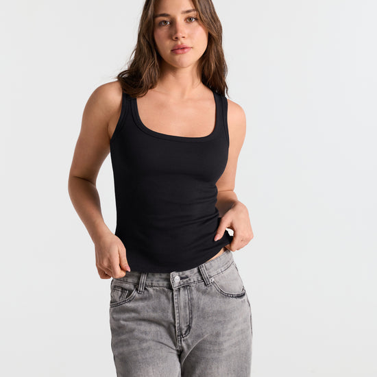 Ribbed U Neck Fitted Tank